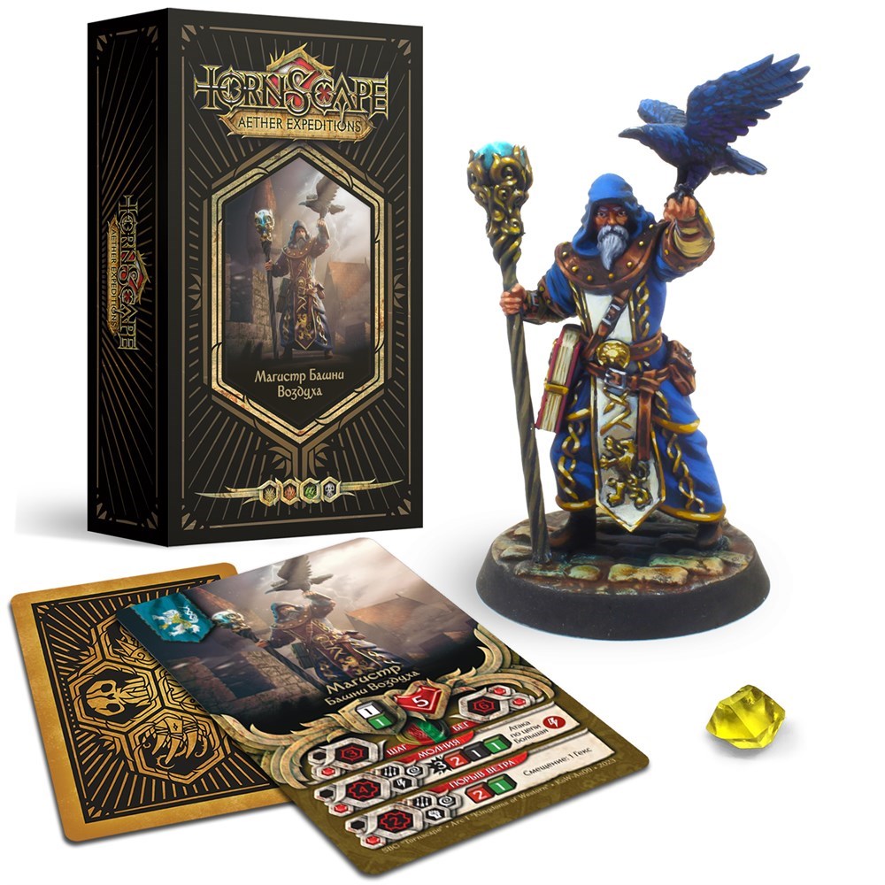 Miniature “Magister of Air Tower” for the tabletop game Tornscape. This set includes parts to assemble the miniature, a 32 mm scenic base, a Miniature Card, and a random Divine Intervention Card (Creation).