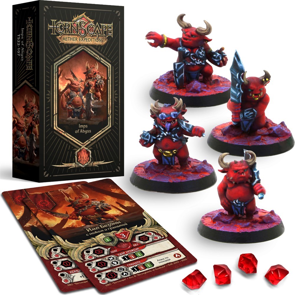 The miniatures from the “Abyss Imps” set for the tabletop game Tornscape. This set includes 4 ready-to-play miniatures and Miniature Cards.