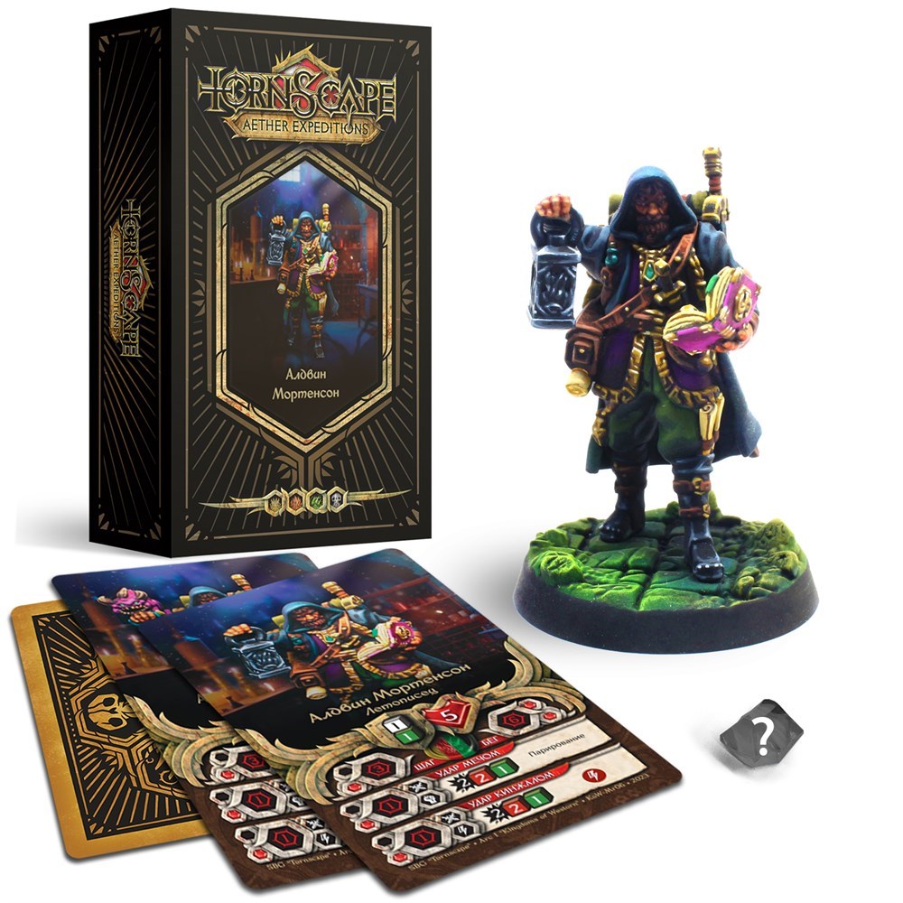 Miniature “Aldvin Mortenson” for the tabletop game Tornscape. This set includes parts to assemble the miniature with two build options, a 32 mm scenic base, two Miniature Cards, and a random Divine Intervention Card.